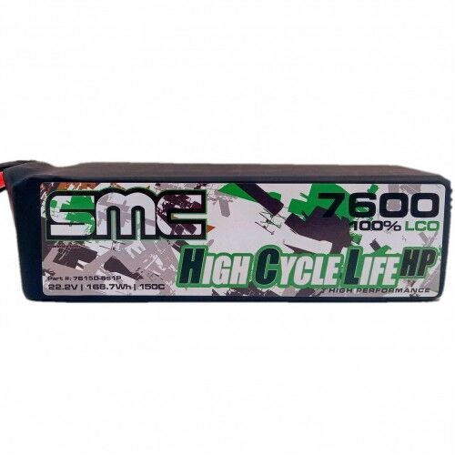 HCL-HP 22.2V-7600mAh-150C pack.   Built robustly with five G10 plates and rubber style shrink.