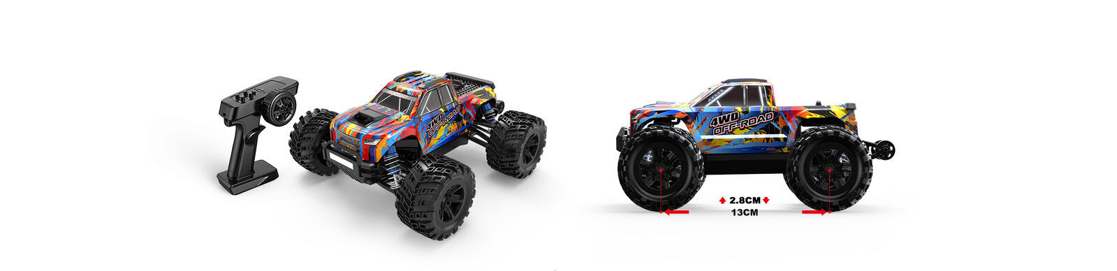 • Versatile Handling: Effortlessly navigate through various environments with the car’s four-wheel drive system, ensuring reliable control and steady traction.