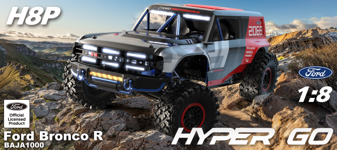 • Officially licensed Ford Bronco Baja 1000 body with magnetic front clip for quick access.