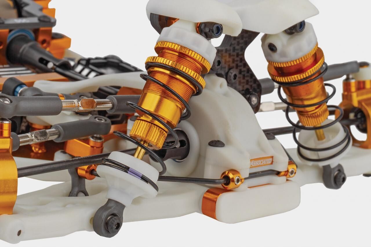 Enhanced aerodynamics come standard with a low-profile body and two rear wing mount heights. The RC10B84D is finished with shock tower covers, 3.5mm turnbuckles and ballcups, and 13mm big-bore shocks, providing the ultimate blend of strength, precision, and performance, the RC10B84 is your key to place top of the podium!