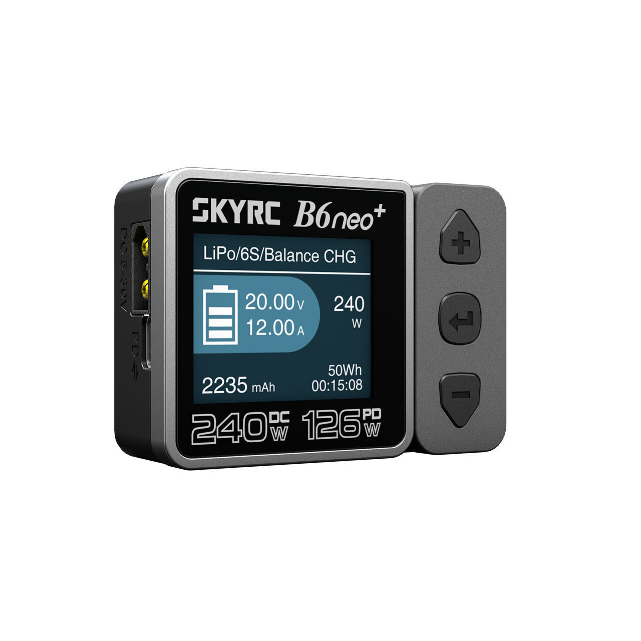 The SkyRC B6neo+ is the next generation of the proven B6neo, offering even higher performance, intelligent charging functions, and a compact, modern design. With a maximum charging power of 240W (DC) and an impressive 126W via PD 3.1, the B6neo+ is one of the most powerful chargers in its class. With new features and the revolutionary reverse charging function, the B6neo+ sets new standards in charging efficiency and versatility perfect for RC enthusiasts, drone pilots, and model builders who rely on fast and reliable charging times.
