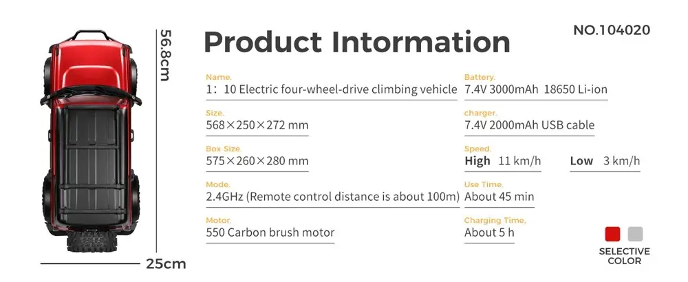 Product Description: 1: 10 electric 4WD climbing vehicle