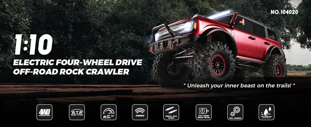 WLtoys 104020 1:10 electric climbing car full simulation structure design, full real car handling feeling, The cool lights of the whole car allow you to have a different visual experience.